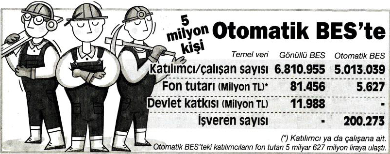 Albayrak’ın açıklamalarına göre çalışanlar, kazançlarıyla orantılı (azdan az çoktan çok) olarak zorunlu BES (tamamlayıcı emeklilik) içinde ele alınacak. Çalışan ve işverenden yapılacak kesintiler BES ile entegre Kıdem Tazminatı Fonu’nda toplanacak. Bilindiği gibi bugün çalışanlar, şartlar oluştuğunda kıdem tazminatını her yıl için 30 gün üzerinde alıyor. Bunun fonla sağlanabilmesi için yüzde 8.2’lik kesinti yapılması gerekiyor. İşverenlerin buna karşı olduğu, yıl başına 15-20 güne denk gelen oranda kesinti istediği biliniyor. Ayrıca işçiler, bugün son ücret üzerinden alınan kıdem tazminatının bu özelliğinin fonla kaybolacağını ileri sürüyor.